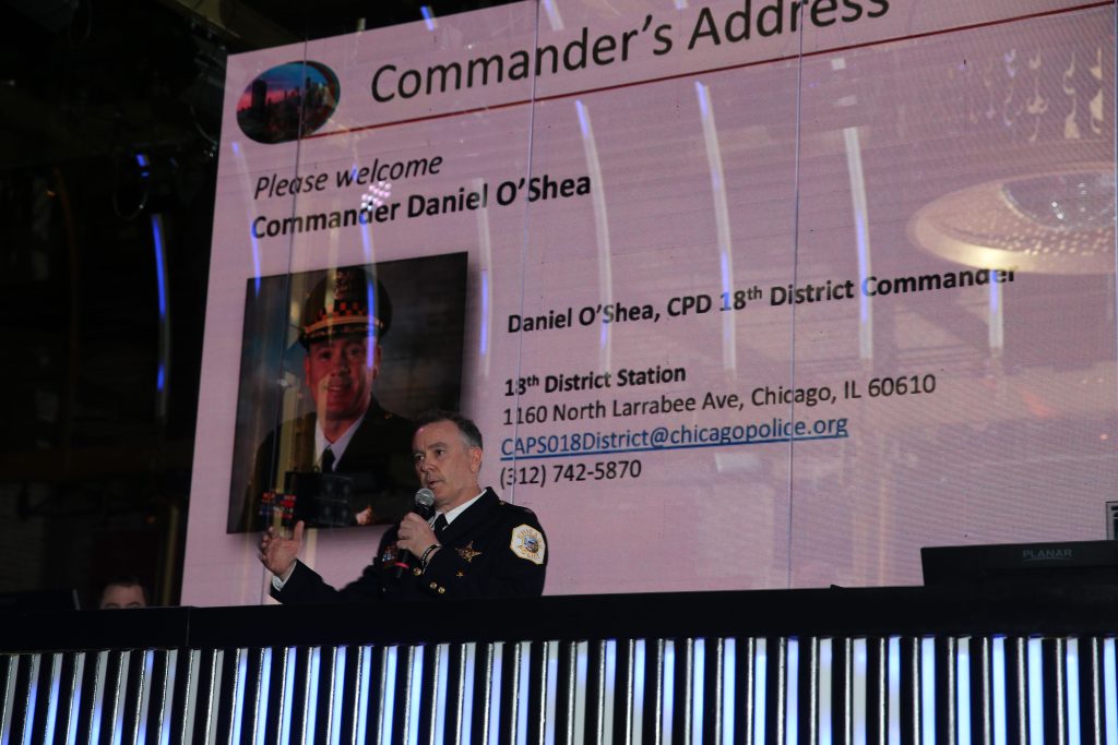 Alderman Brendan Reilly and Commander Daniel O’Shea provided updates on Ward 42 improvements and 18th District Public Safety.